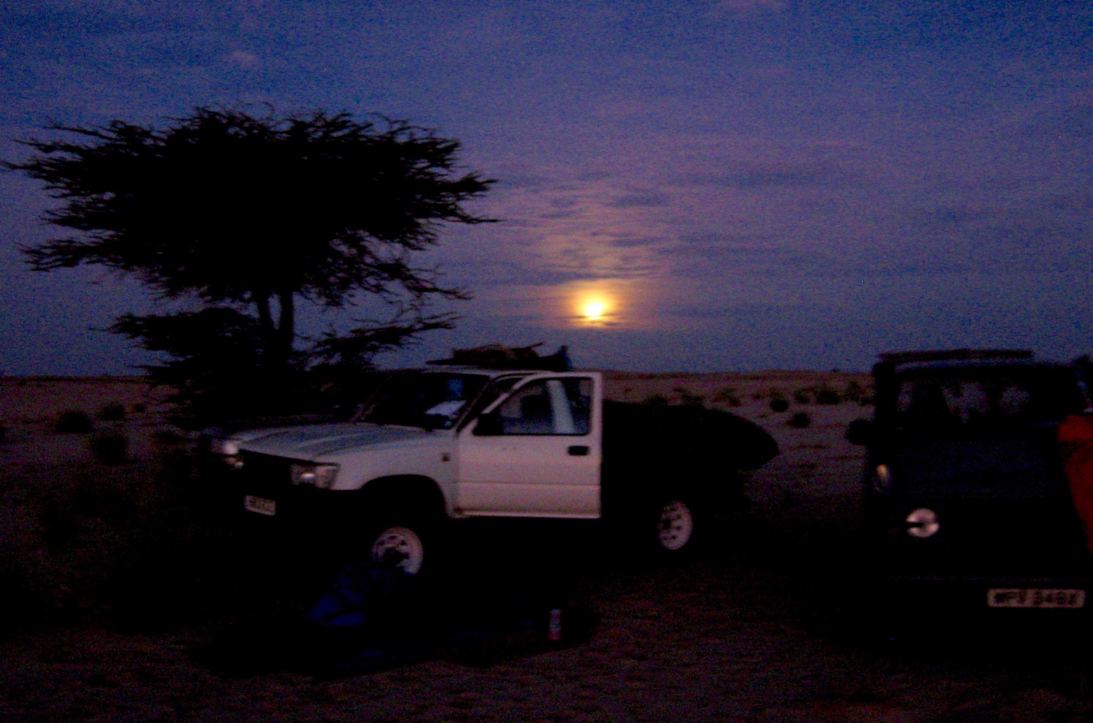 With out man in the UK on standby we settled back for the long drive to the Mauritanian border. Just south of Layounne we filled all our tanks with the last cheap fuel from Moroccan-controlled Western Sahara. I’d picked up an 50-gallon drum for nothing while Ron had ‘tiled’ his 60 with a carpet of jerricans. Roger and Sue had a built-in 400-litre set up. If the pump attendant was on a commission he was having a pretty good day, while for us it was an opportunity to find out how our rides performed at near-maximum payload. With relief my Taro still managed to pull up the odd incline without protest. Perhaps the Sand Sea would not be the death of it after all…