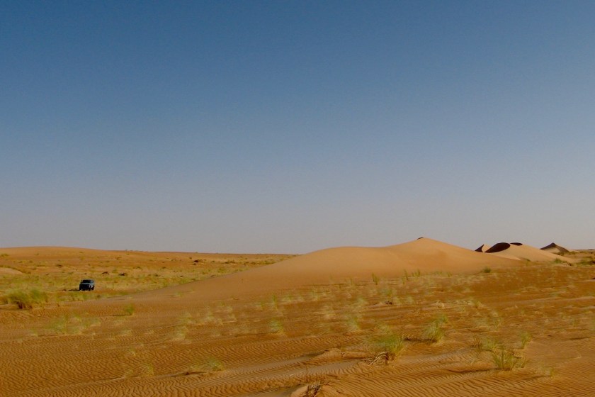 A wind stirred up from the northeast, finally cooling temperatures but also reducing visibility and as always, bringing the worry of an all-out sand storm. After a while banks of grass covered the sands, making for rough going over the tussocks. Anywhere else this place would have long ago been grazed to a dust bowl but out here, far beyond the range of the nomads’ camels, the thick grass grew unseen, withered and died.