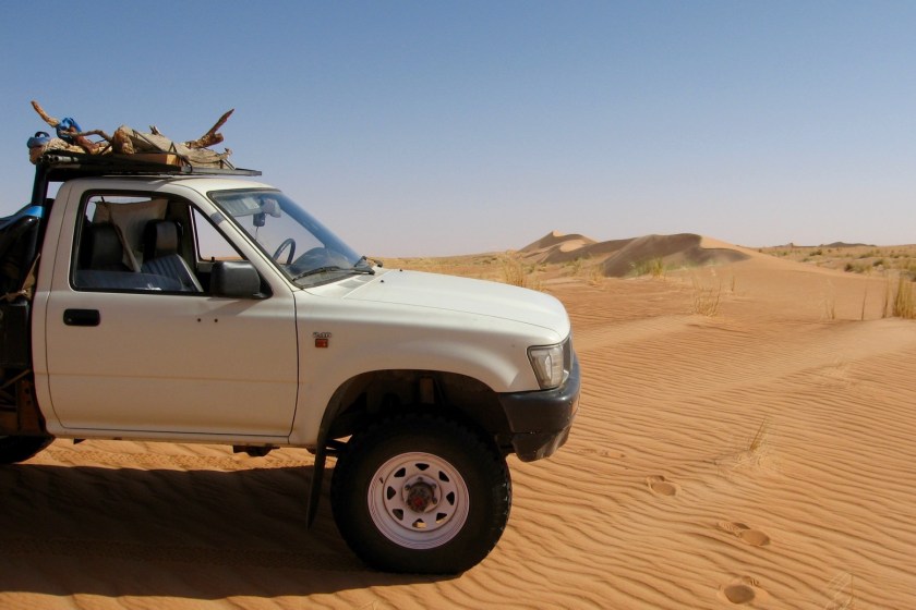 I’d kept our exact route quiet as I knew well that both the Dakar Rally and fellow travellers had been ambushed in remote areas when detailing their intentions too clearly. In fact, for want of anything better I planed to follow the JSE’s tracks into the Ouarane Sand Sea. This initial combination of dunes coupled with maximum payload would be the crux of the trip but however daunting, if the JSE had managed it with towing 101s, then so could we.