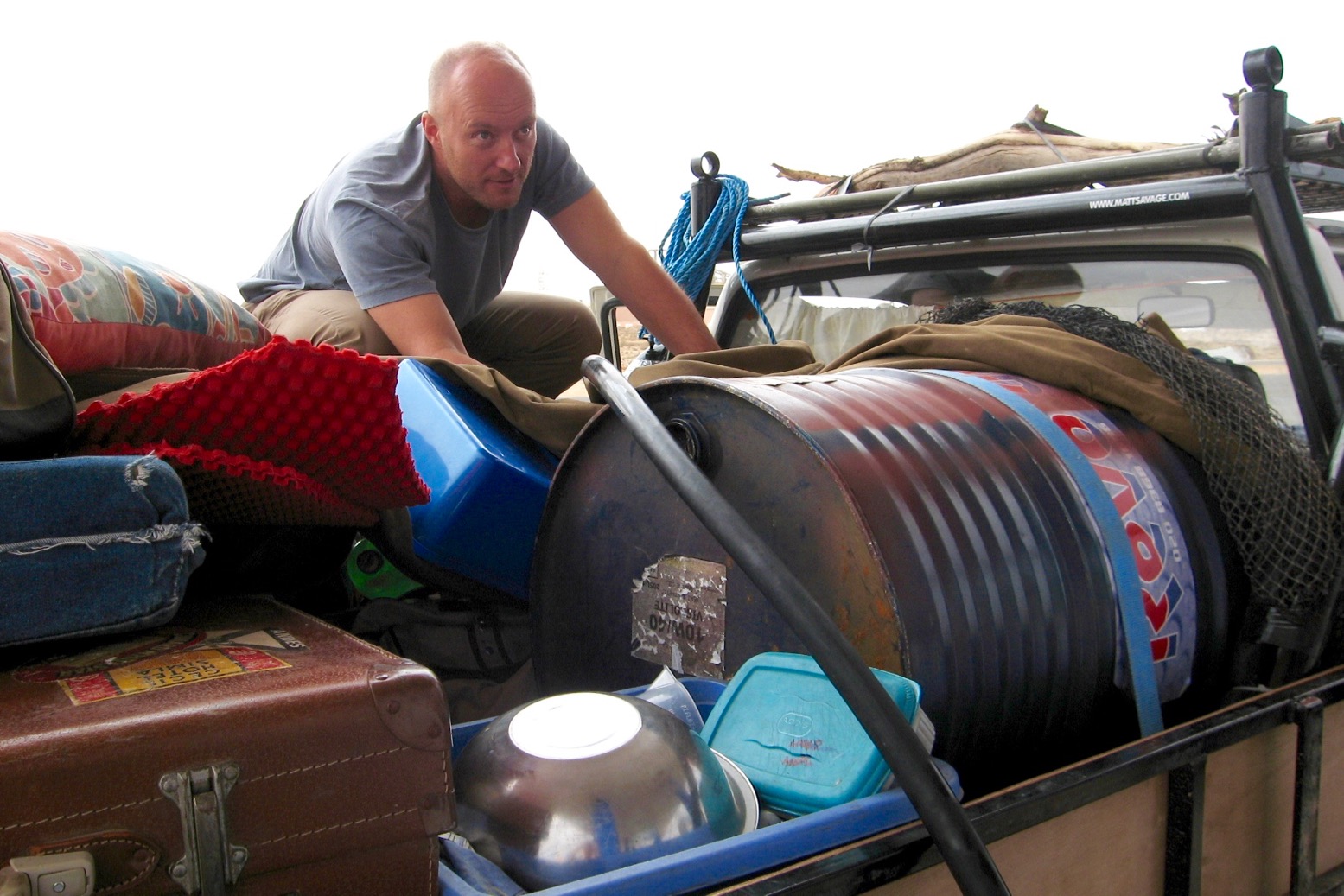 A couple of months earlier I’d spent half a day at the Royal Geographical Society’s library studying the expedition report, jotting down their waypoints laboriously gathered with sextants and almanacs twenty years before GPS came on the scene. Back then, running the Rover V8s down to 4mpg, the JSE had to carry huge fuel loads all the way from the coast. With our diesels we were expecting more like 14mpg at worst which dispensed with the need for the JSE’s trailers or air support.