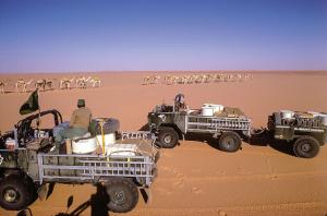 Were the outer rings truly mini-escarpments as depicted on the aged French maps, or could we find a passage through? How much fuel would it consume? And what about the unseasonally high temperatures which would reduce our water range, or the 20-mile dog-leg we’d have to take through the dunes that had taken the JSE two days? After all that, Mali had a whole different set of potential dangers. In Atar we’d received bad news. Backed by Algerian and probably US support, the Malian Tuareg in northeast Mali had turned on Moktar ben Moktar and his crew, pushing them back west in a series of skirmishes directly into our path.