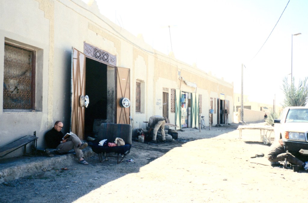 We took a road west which ended up in Rissani which seemed much livelier than Erfoud. Asking at the first garage we got on the usual African run around town with a guy on a moped; to one shop, then another and finally some dude’s lock-up where a few 190-looking arms lay on the floor. Negotiations commenced. In the meantime I’d called Matt on the bat phone to see what a 190 wishbone costs in the UK to give me a clue what I was bargaining for. I was happy to drive to a dealer up country and get a new one, but in the end, with all parties playing the usual games, we settled for a price with fitting.