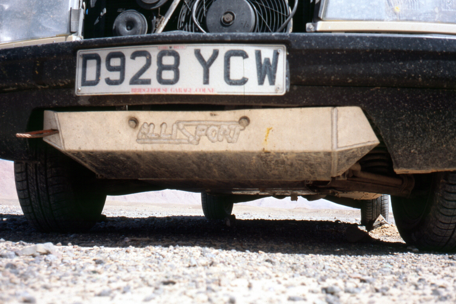 While I was in the Gilf over Christmas I left the car with Andy at Allisport in Gloucestershire with instructions to replace the oil-soaked plastic ‘bashplate‘ with something with more of a clang to it. A month later AlliAndy had done a great job. How rare it is that you ask someone to make a custom fabrication and get exactly what you asked for. The plate was 1.5m long, covering the sump and gearbox, with a special cowling going up around the front to protect the bottom of the radiator, a weak point when road cars nosedive off dunes which they have to attack faster than a 4×4.