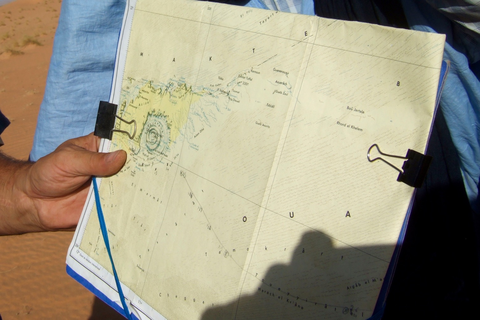 Were the outer rings truly mini-escarpments as depicted on the aged French maps, or could we find a passage through? How much fuel would it consume? And what about the unseasonally high temperatures which would reduce our water range, or the 20-mile dog-leg we’d have to take through the dunes that had taken the JSE two days? After all that, Mali had a whole different set of potential dangers. In Atar we’d received bad news. Backed by Algerian and probably US support, the Malian Tuareg in northeast Mali had turned on Moktar ben Moktar and his crew, pushing them back west in a series of skirmishes directly into our path.