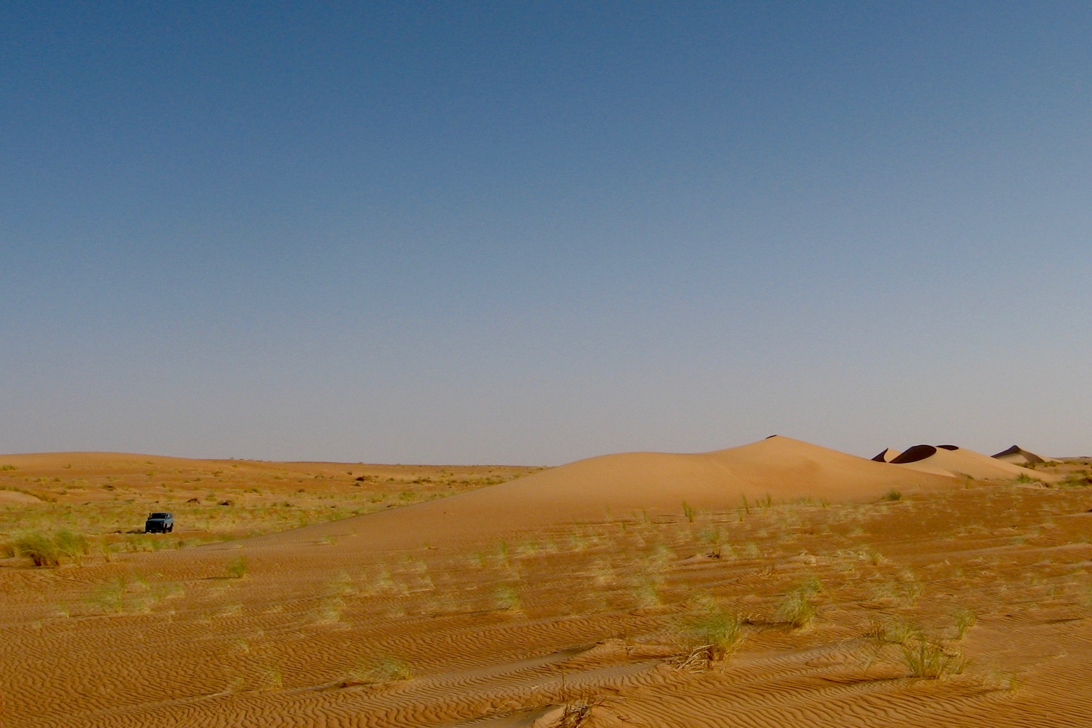 A wind stirred up from the northeast, finally cooling temperatures but also reducing visibility and as always, bringing the worry of an all-out sand storm. After a while banks of grass covered the sands, making for rough going over the tussocks. Anywhere else this place would have long ago been grazed to a dust bowl but out here, far beyond the range of the nomads’ camels, the thick grass grew unseen, withered and died.